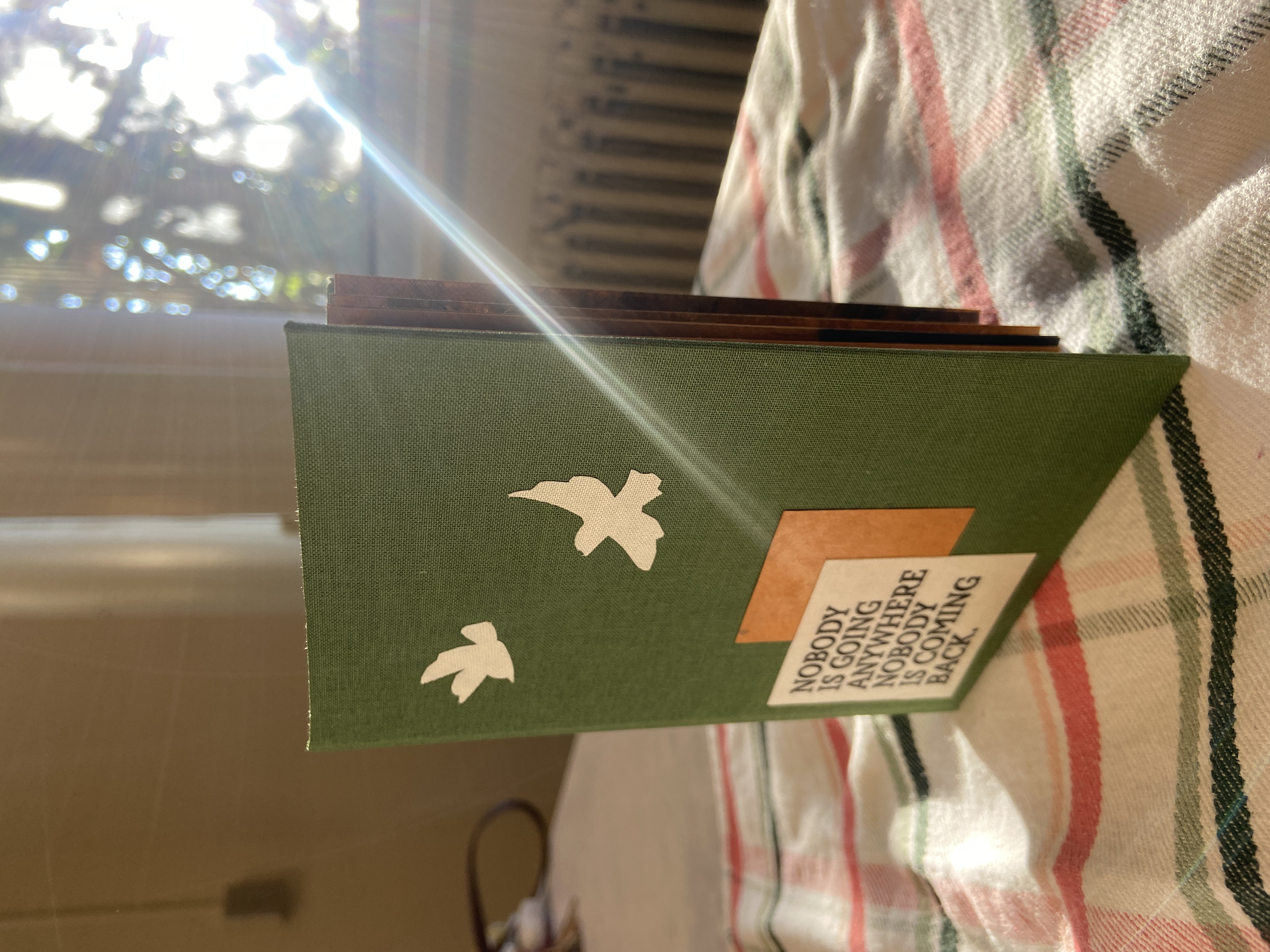 Nobody is Going Anywhere is handbound, and risograph printed onto orange banana fiber paper.